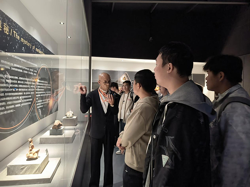 览天地之阔,砺科学之志。走进陨石博物馆。从天外陨石到宇宙奥秘,同学们的视野从厚重的地面工程延伸至浩瀚的星空。这不仅是一次自然科学知识的普及,更是一次科学素养与探索精神的启迪。参观学习告诉新生,一名优秀的工程师,既要有脚踏实地的“工匠精神”,也要有仰望星空的创新视野与博大胸怀,综合素质的培养是成长为卓越人才的关键。