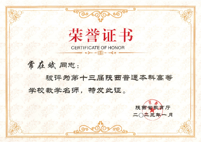 近日,陕西省教育厅发布了《关于表彰第十三届陕西普通本科高等学校教学名师奖获奖教师的通知》(陕教函[2023]45号),ky开元集团官网公共课部常在斌教授荣获教学名师奖。