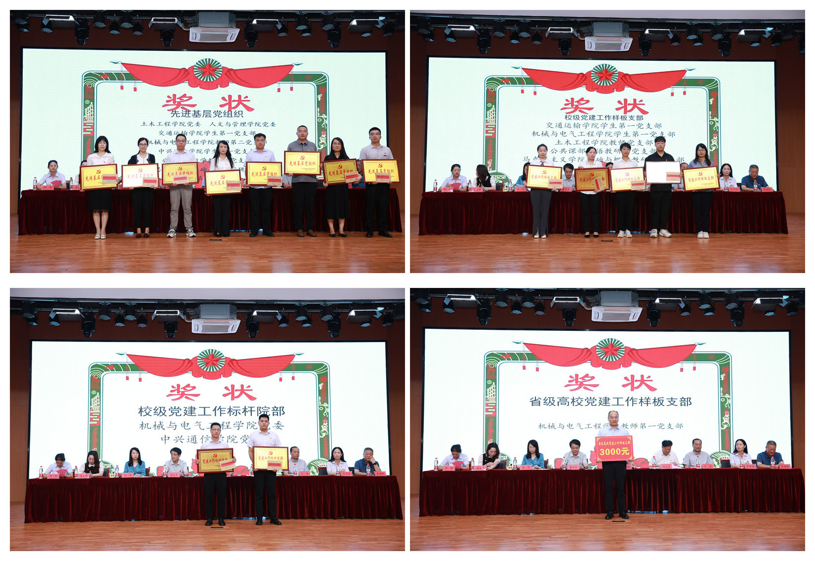学校执行校长曹庆年宣读学校党委《关于表彰先进基层党组织、优秀共产党员、优秀党务工作者的决定》和《关于公布第一批校级党建标杆院部、样板支部培育创建名单的通知》,共有60名优秀个人和16个先进集体受到了表彰。