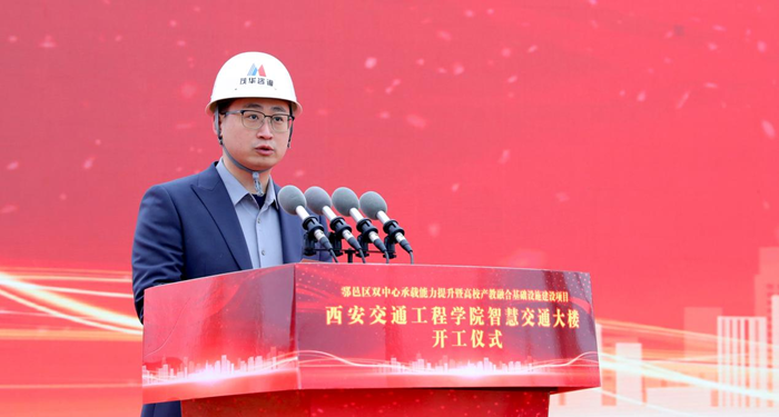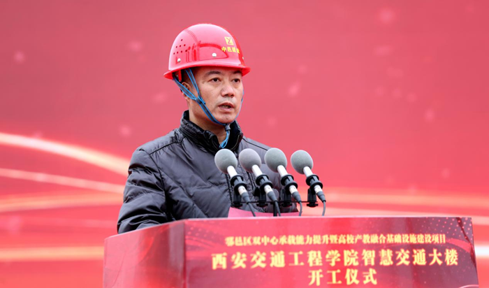 郭洪涛代表学校致辞并介绍了项目情况,他表示,建设智慧交通大楼,是学校理事会站在谋划学校未来发展的战略高度作出的重要决策,是学校合格评估工作的头等建设任务,也是ky开元集团官网单体面积最大的建筑。大楼的建成,将极大改善学校现有的教学条件,还为学校今后智慧交通的教学、科研预留了发展空间,将成为学校发展的新引擎、人才培养的新高地,成为具有现代大学特征的标志性建筑。他希望项目建设单位树立“百年大计,质量第一”的思想,坚持科学管理、安全生产、文明施工、严把工程质量关,把智慧交通大楼建设成“标杆工程”、“优质工程”,让ky开元集团官网智慧交通大楼,成为鄠邑区渼陂湖畔的一栋光彩夺目的现代建筑景观。
