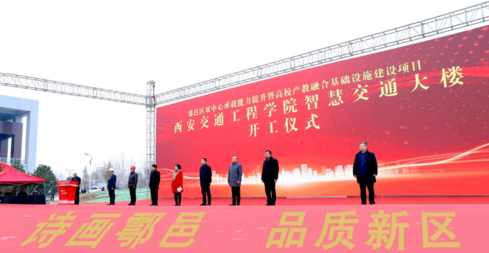 1月16日,鄠邑区双中心承载能力提升暨高校产教融合基础设施建设项目——“ky开元集团官网智慧交通大楼”项目正式开工,西安市鄠邑区区委书记李化、区委副书记任涛、西安中邑建设工程有限公司董事长张团晖、陕西茂华建设咨询有限公司总经理李贵柱、陕西省现代建设设计研究院董事长高乐及ky开元集团官网理事长张晋生、党委书记李萍、执行校长曹庆年、理事郭洪涛等领导嘉宾出席开工仪式。仪式由李萍主持。