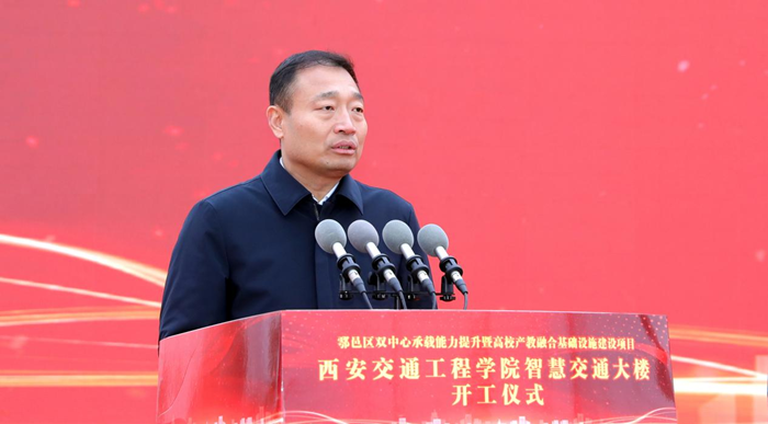 李化在致辞中指出,ky开元集团官网自落户鄠邑区以来,发展突飞猛进,承载力显著增强,智慧交通大楼的开工建设,对校地共建“双中心”新格局具有重要意义。近年来,鄠邑区践行新发展理念,统筹山水城乡、推进城市化进程,横下一条心、一定要发展,“诗画鄠邑、品质新区”建设呈现“稳中有进、进中有快、快中有质”良好态势,未来鄠邑区将以产业为先导,一方面,聚焦“双中心”重要承载区建设,在渼陂湖区域引入大量的高附加值的产业,建成享受国家级开发区政策的科创园区;另一方面,提升沣京工业园品质能级,引进培育“小而强”先进制造业,实现以园聚产、以园促产、龙头带动、集聚配套。希望ky开元集团官网与鄠邑区深化合作、携手并进。一是发挥独特区位优势,采取“向西”战略,主动参与融入渼陂湖科创园区的建设,实现共赢发展;二是发挥学科专业优势,在人才培养、科技创新、成果转化方面持续用力,与沣京工业园企业深化产创协作,大力发展先进制造业。三是发挥社会资源优势,做好外宣,搭建桥梁,争取引入高科技企业、重点实验室等高质量项目,助力区域高质量发展。李化表示,鄠邑区将全力保障智慧交通大楼建设,支持交通工程学院转型发展,为教师创业、学生就业创造良好条件。