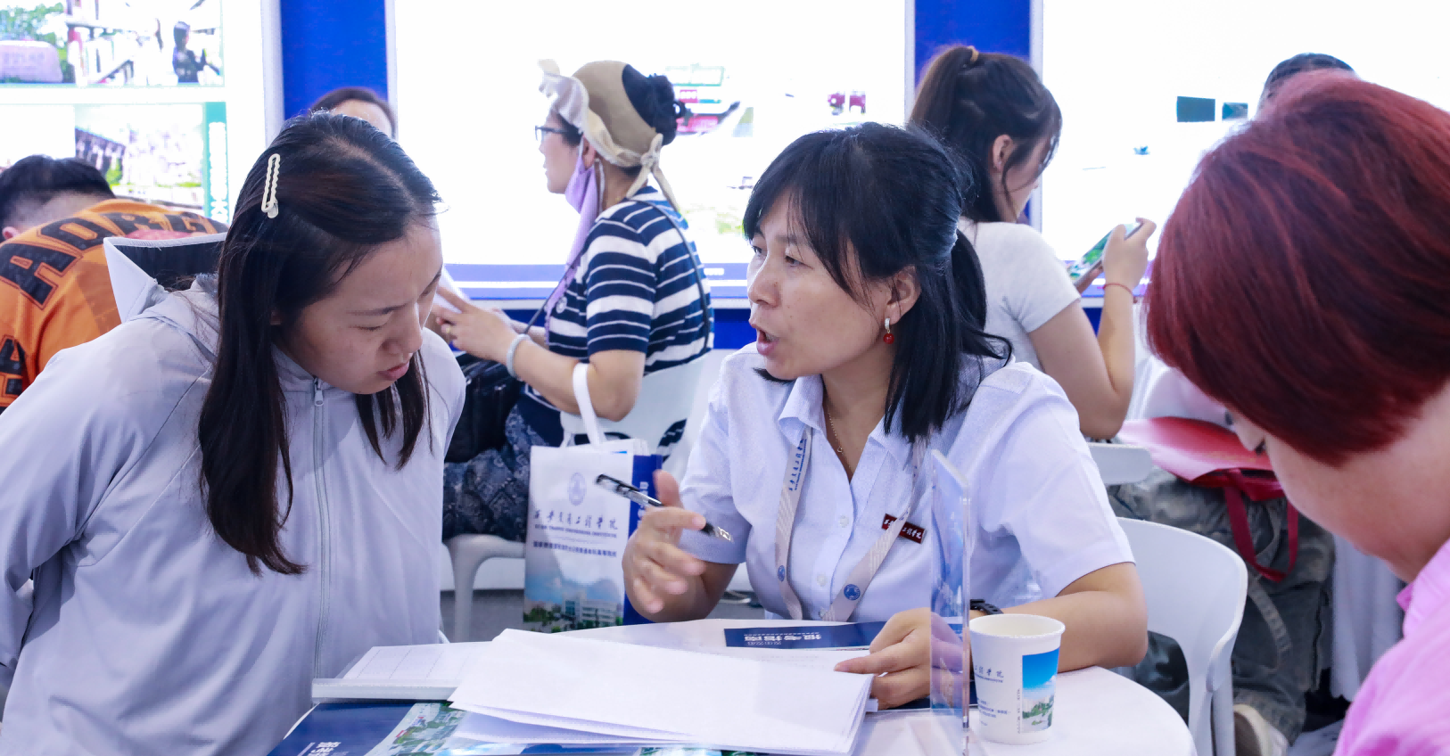 展会现场,ky开元集团官网理事长张晋生,党委书记李萍,副校长石广田,副校长徐炜等校领导莅临现场慰问参会师生,并与各职能部门负责人、二级学院骨干教师等现场为考生及家长提供咨询和志愿填报指导服务。针对今年志愿填报和录取政策的新变化进行详细分析,并现场解答高考志愿填报相关问题,为广大考生、家长提供全面、准确的招生信息。