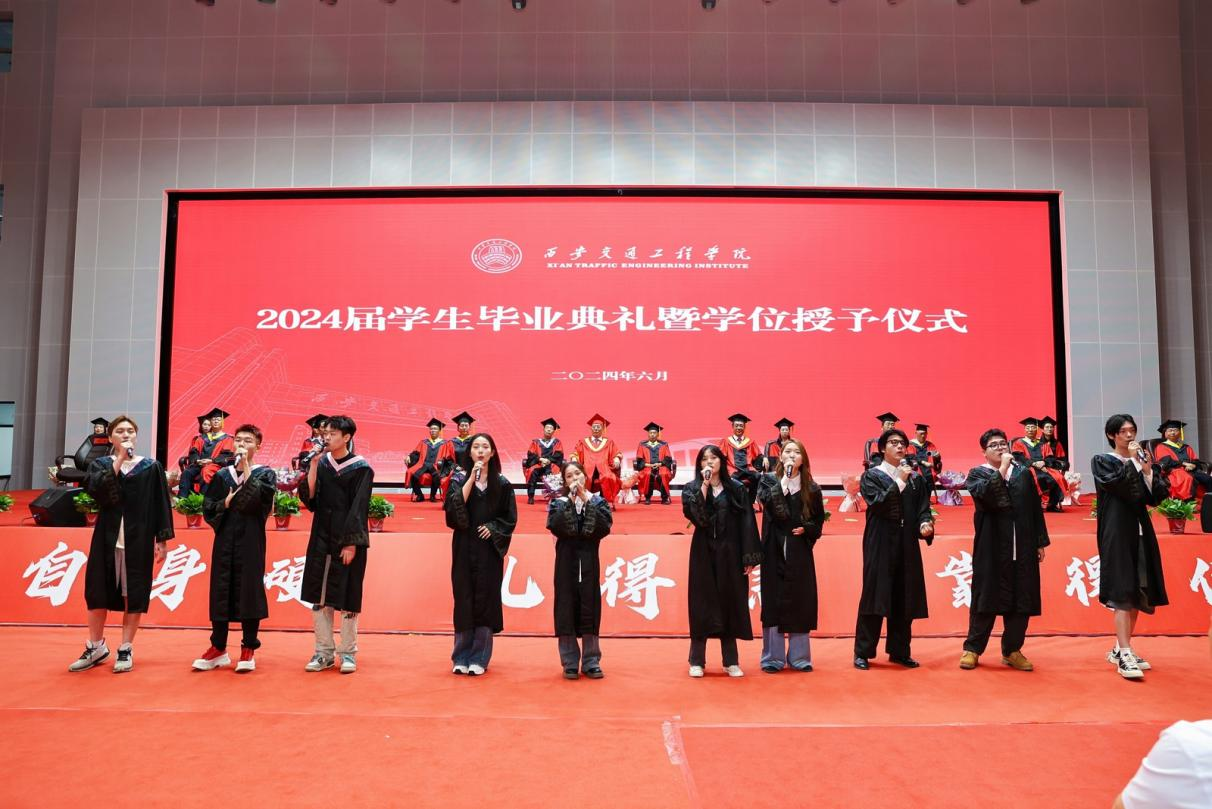 典礼上,毕业生代表为2024届全体毕业生现场献歌,演唱歌曲《那些年》、《和你一样》;一声声附唱含蓄道出对母校、对青春所有未能出口的怀念,深深感染着现场所有与会人员,在歌声中毕业生们手捧鲜花走上主席台,为学位评定委员会全体成员献花并深情拥抱;随后全体毕业生右拳握起,集体宣誓,在铮铮誓言声中下定决心,用智慧和才华肩负起民族复兴的使命,用青春和热血承担起国家富强的责任。