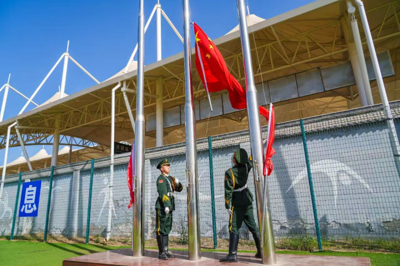 入场仪式结束后,举行了庄严的升旗仪式,全体师生齐唱国歌,体现了交院师生热爱祖国的炙热情感。