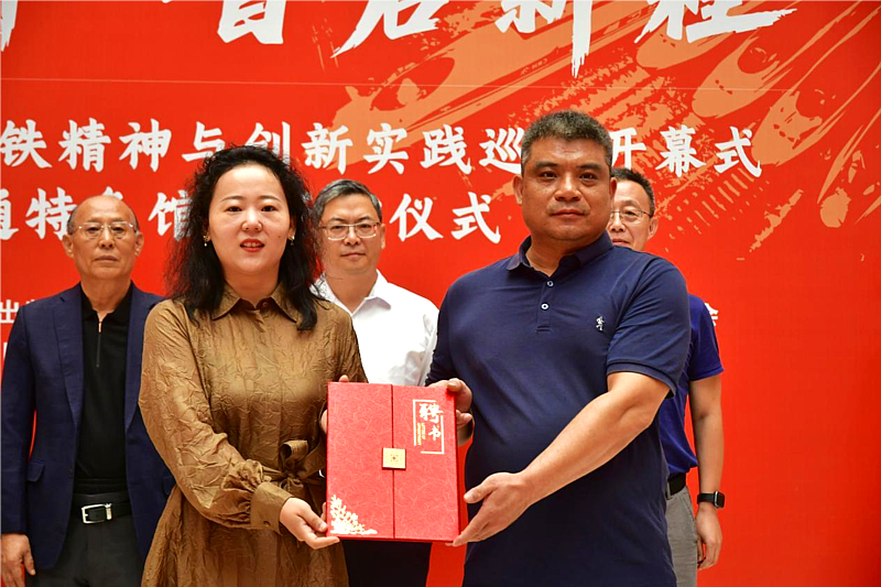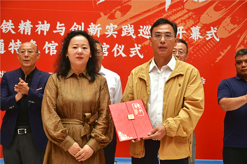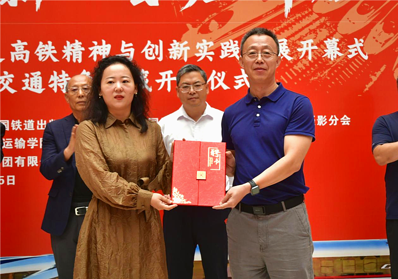 执行理事张慧和中铁第五勘察设计院集团有限公司西北区指挥部总经理王智为轨道交通特色馆藏揭牌