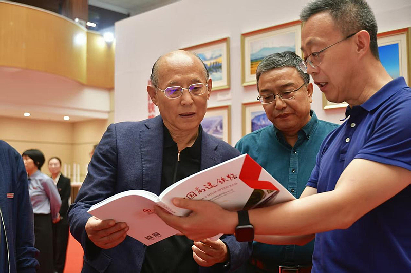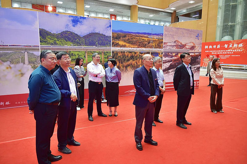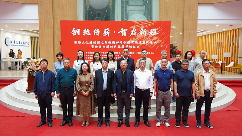 理事长张晋生宣布,“‘钢轨传薪・智启新程’铁路文化进校园巡展及轨道交通特色馆藏开馆仪式正式启动!”随后,嘉宾与师生分批参观轨道交通特色馆藏及“高铁精神与创新实践巡展”。巡展通过图文、模型等形式,系统呈现中国高铁从京张高铁“百年时速跨越”到CR450动车组技术突破、从“四纵四横”到“八纵八横”路网建设的非凡历程。