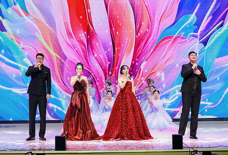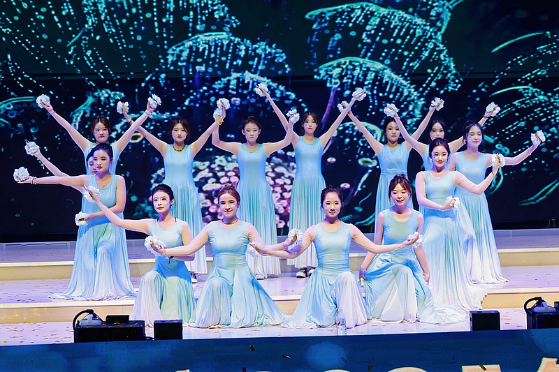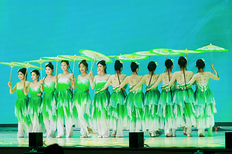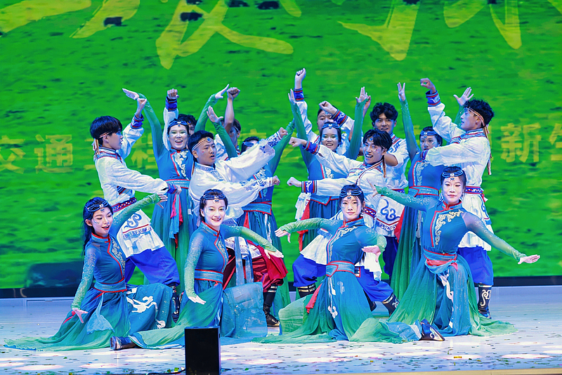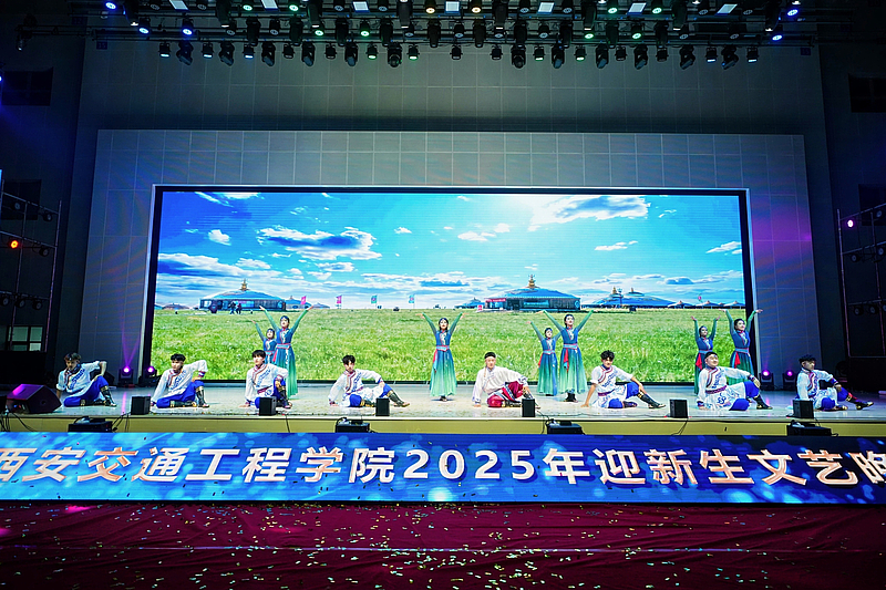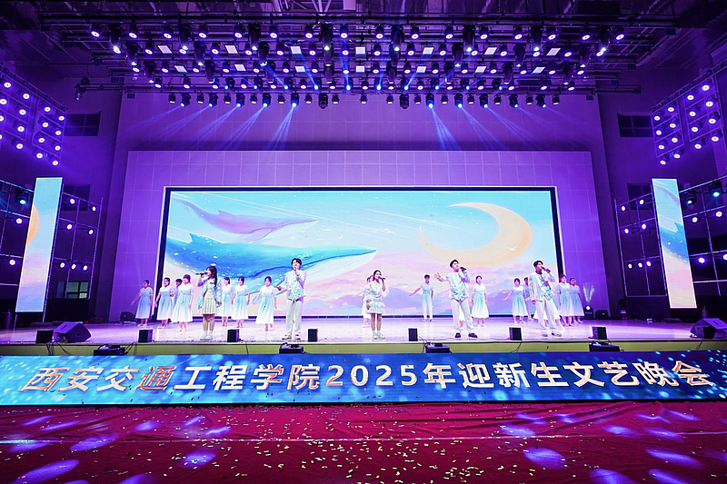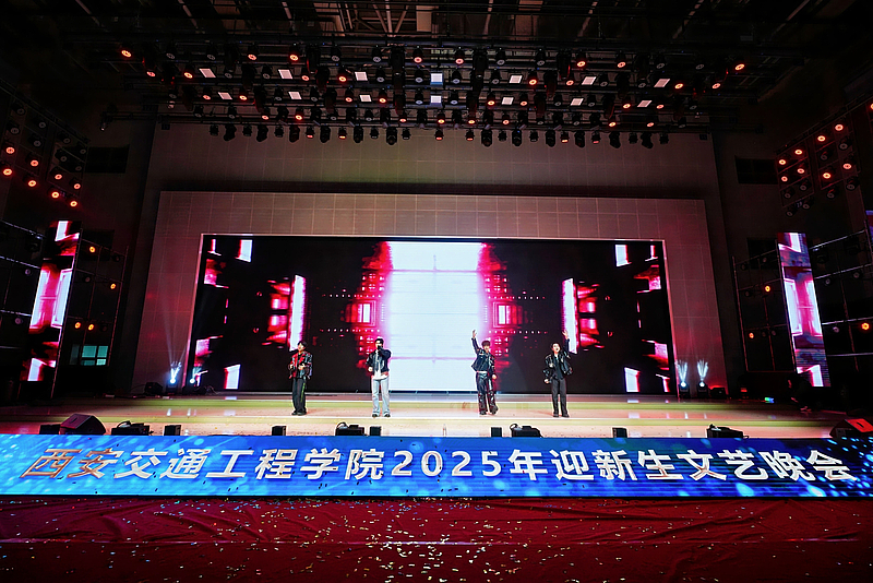 音乐学教师代表一曲深情磅礴的《我爱你中国》,表达了深厚的家国情怀,熟悉的乐曲引发了全场大合唱;二胡合奏《我的祖国》《游击队歌》《赛马》,奏响了经典红歌的激昂旋律。少数民族工作室带来的民族舞《奔腾》,以豪迈奔放的舞姿展现了各民族文化的魅力与活力,将晚会气氛推向高潮。主题歌舞《出发向未来》节目旋律激昂,歌词充满力量,伴舞充满希望,师生们生动诠释了晚会主题,表达了西交院全体师生对2025级新生的美好祝愿与殷切期望,鼓励他们在这片新的热土上勇敢追梦,共创辉煌。