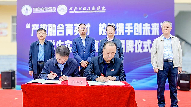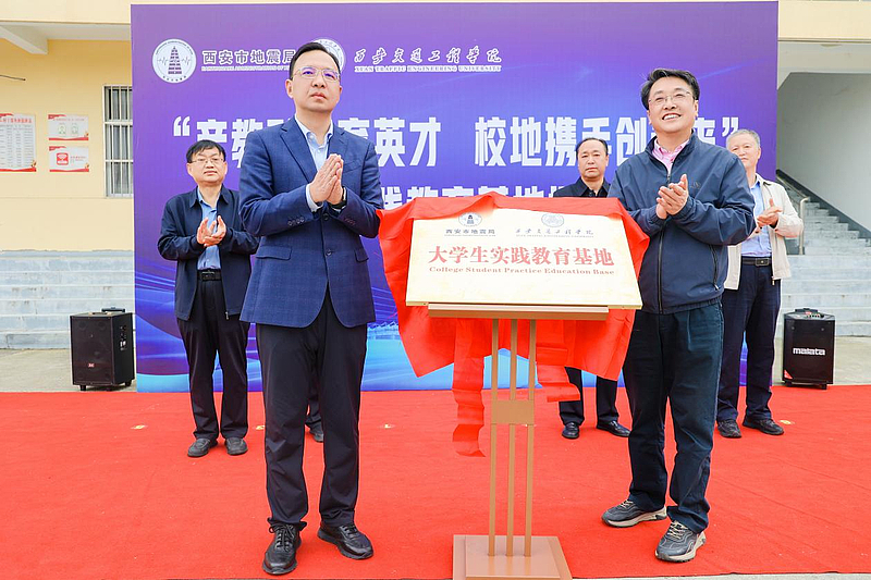 ky开元集团官网校长曹庆年与西安市地震局党组书记、局长任涛共同为“大学生实践教育基地”揭牌,将现场气氛推向高潮。红绸揭下,铜牌闪亮,标志着双方合作正式迈入实质性推进阶段。