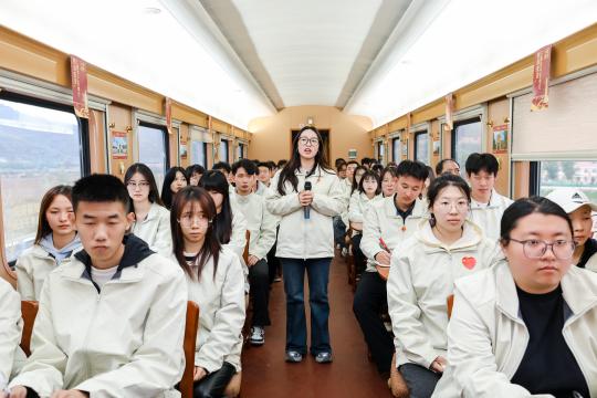 在前往延安的列车上,马克思主义学院的教师们提前开启“理论预热”,为师生带来生动的 “列车上的思政课”,让红色理论深入人心。