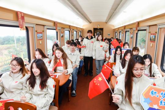 思政课后,师生们开展红歌传唱活动,《歌唱我的祖国》《南泥湾》等经典旋律此起彼伏。悠扬的歌声与列车的轰鸣声交织,仿佛跨越时空,与延安时期的革命先辈隔空对话,为红色实践注入了饱满的精神动能。