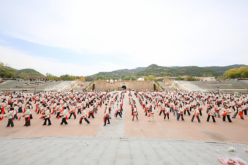 师生体验传统非遗项目安塞腰鼓