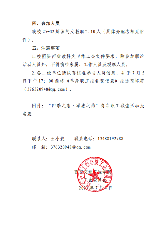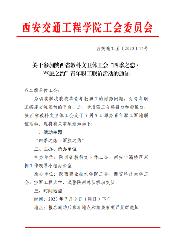关于参加陕西省教科文卫体工会“四季之恋·军旅之约”青年职工联谊活动的通知