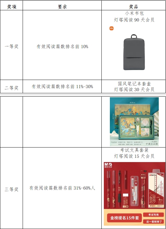各类奖项的获奖要求及奖品设置如下: