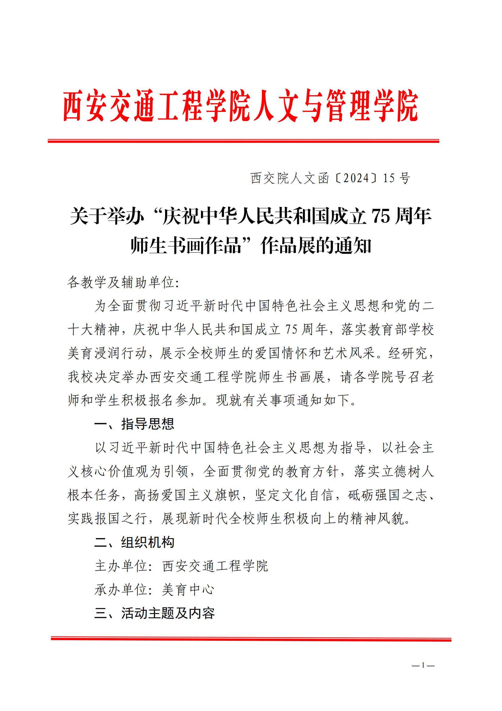关于举办“庆祝中华人民共和国成立 75 周年师生书画作品”作品展的通知
