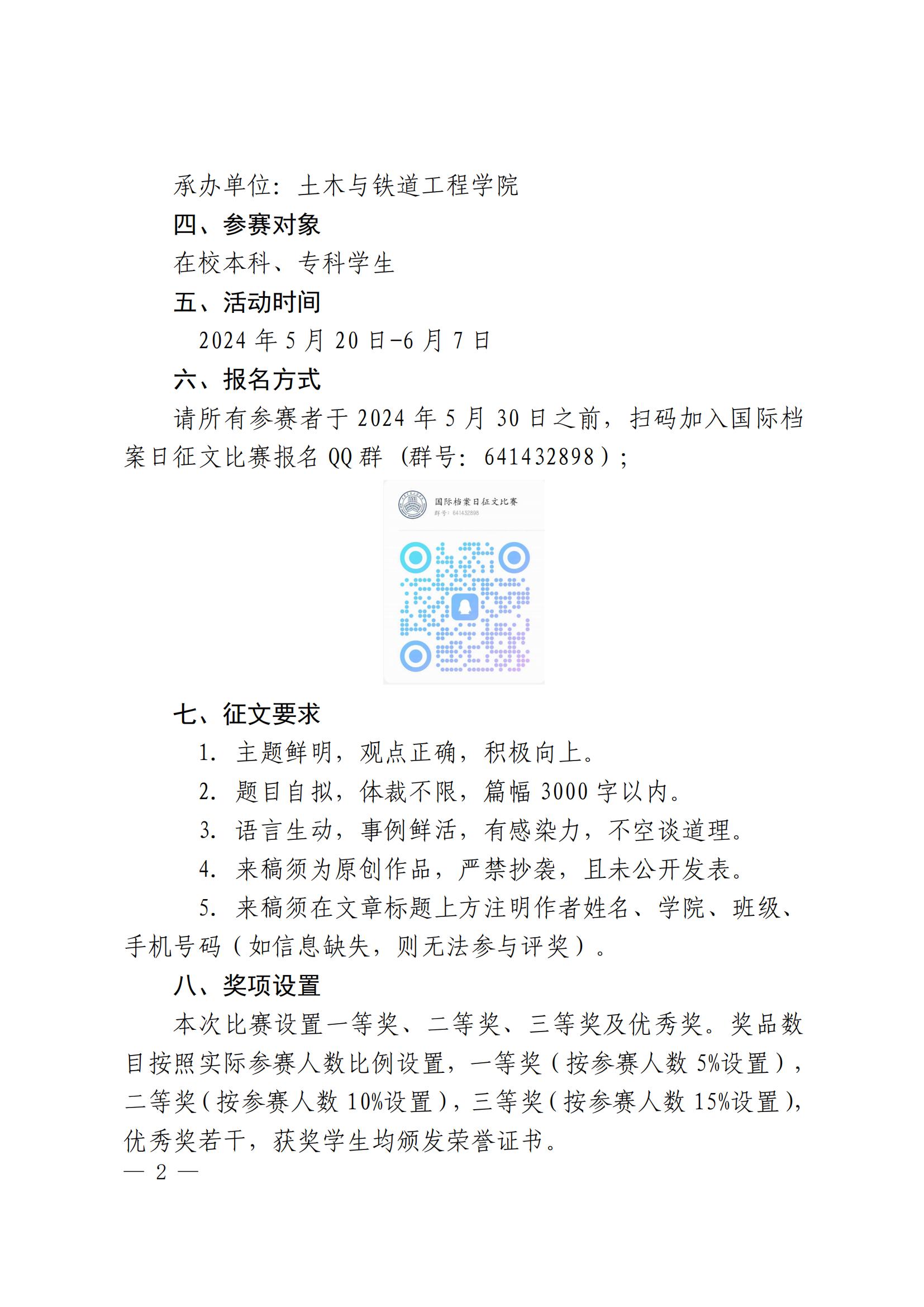 关于举办 2024 年国际档案日主题征文比赛的通知