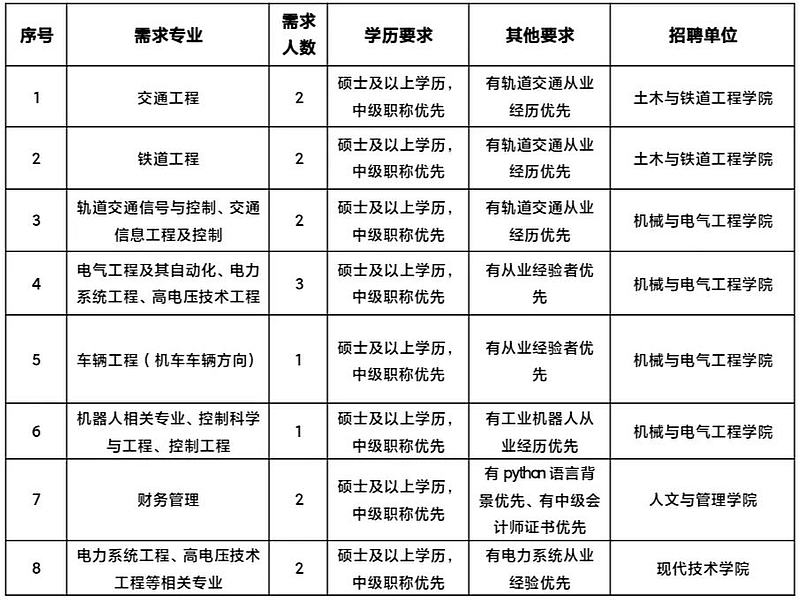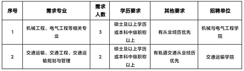 2.需求专业方向:交通运输类、机械类、电气类、电子信息类、自动化类、计算机类、土木类、财会类、物流管理与工程类、电子商务类、教育学类、体育学类、马克思主义理论类等