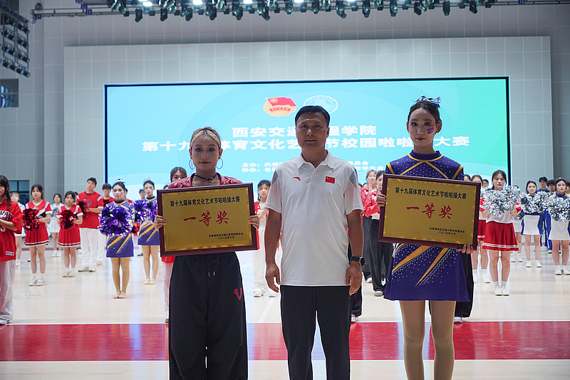 公共课部主任常在斌啦啦操大赛二等奖获奖学院颁奖