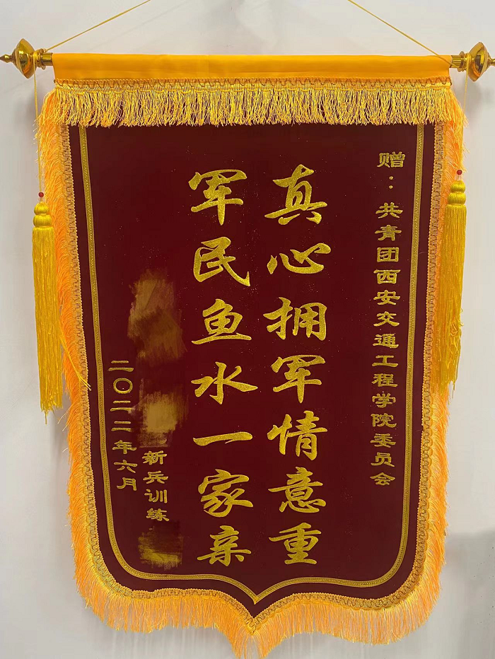 6月22日上午,中国人民解放军某部队官兵莅临ky开元集团官网,代表新兵训练机构向学校团委赠送“真心拥军情义重 军民鱼水一家亲”字样锦旗,团委书记千红热情接待。