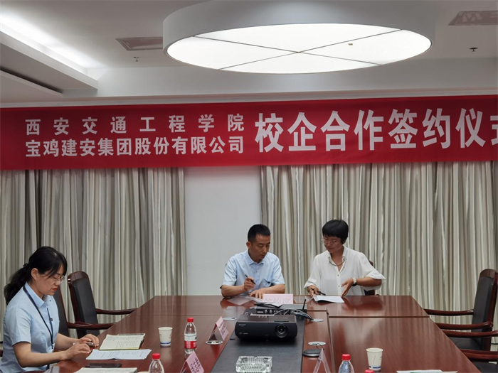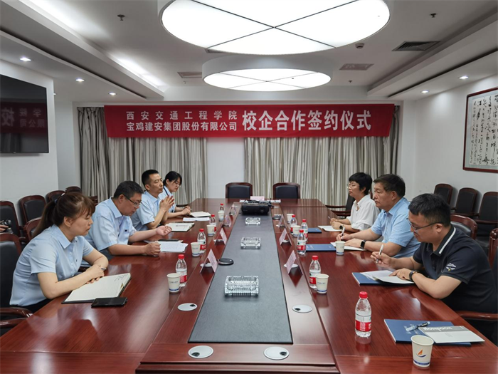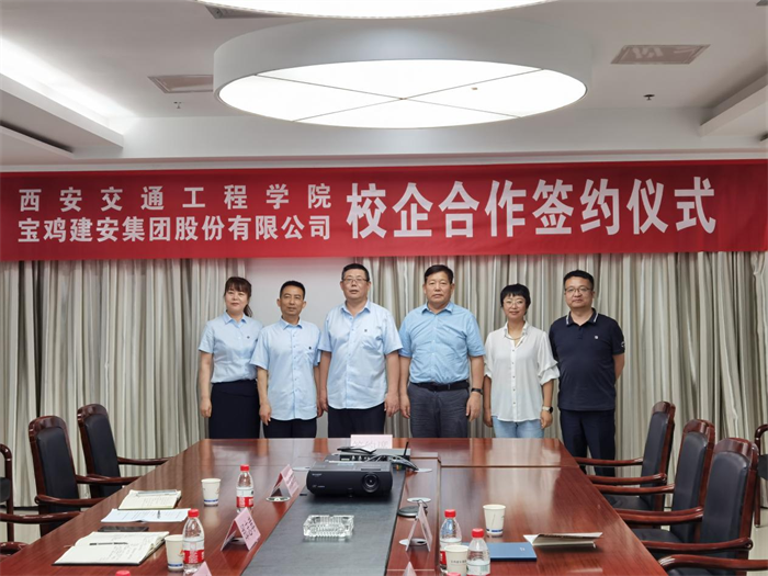 6月21日,校长刘建朝带领土木工程学院张院长、杨瑞娟副院长、教务处副处长齐军营一行走访宝鸡建安集团股份有限公司,就进一步深化产教融合、创新人才培养、学生实习就业等进行专题调研,并举行校企合作签约仪式。宝鸡建安集团股份有限公司党委书记宁平、总经济师邰志孝、财务负责人徐桂兰出席签约仪式,宝鸡建安集团人事部部长徐京利主持仪式。