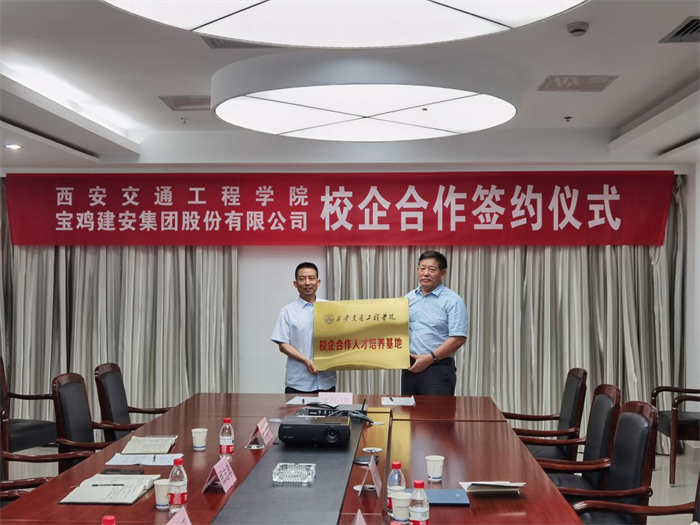双方就学生实习、就业、产教融合、校企合作联合培养等合作事项进行了深入的沟通交流后,形成合作意向,杨瑞娟副院长代表学校与宝鸡建安集团邰志孝总经济师签订了校企合作协议,刘建朝校长为宝鸡建安集团授牌。今后,双方将本着共建共赢的目标,力争将人才培养、科学研究、技术创新、学生就业做成人才培养实体。