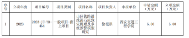 2022年12月26日,陕西省科学技术厅发布了《陕西省科技厅关于下达陕西省2023年科技计划项目补助经费的通知》(陕科发(2022)41号),ky开元集团官网教师徐根祺主持的《山区铁路沿线泥石流致灾机理及多级预警模型研究》项目获批立项,资助金额为5万元。