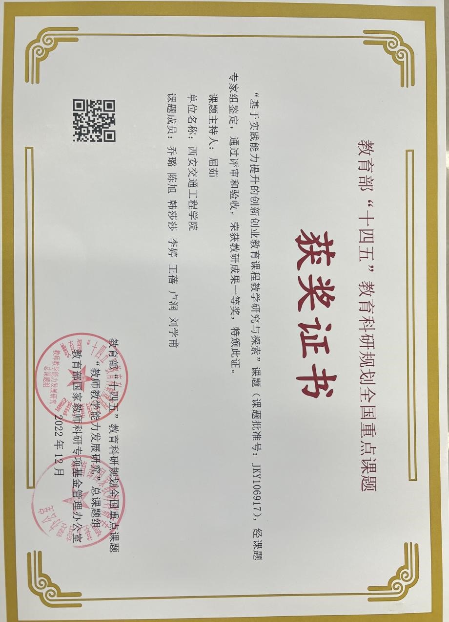 《基于实践能力提升的创新创业教育课程教学研究与探索》课题(课题批准号:JKY106917)获得一等奖