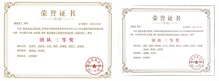 ky开元集团官网学生在2022年全国数字建筑创新应用大赛本科组团体赛项中荣获二等奖4项、三等奖3项