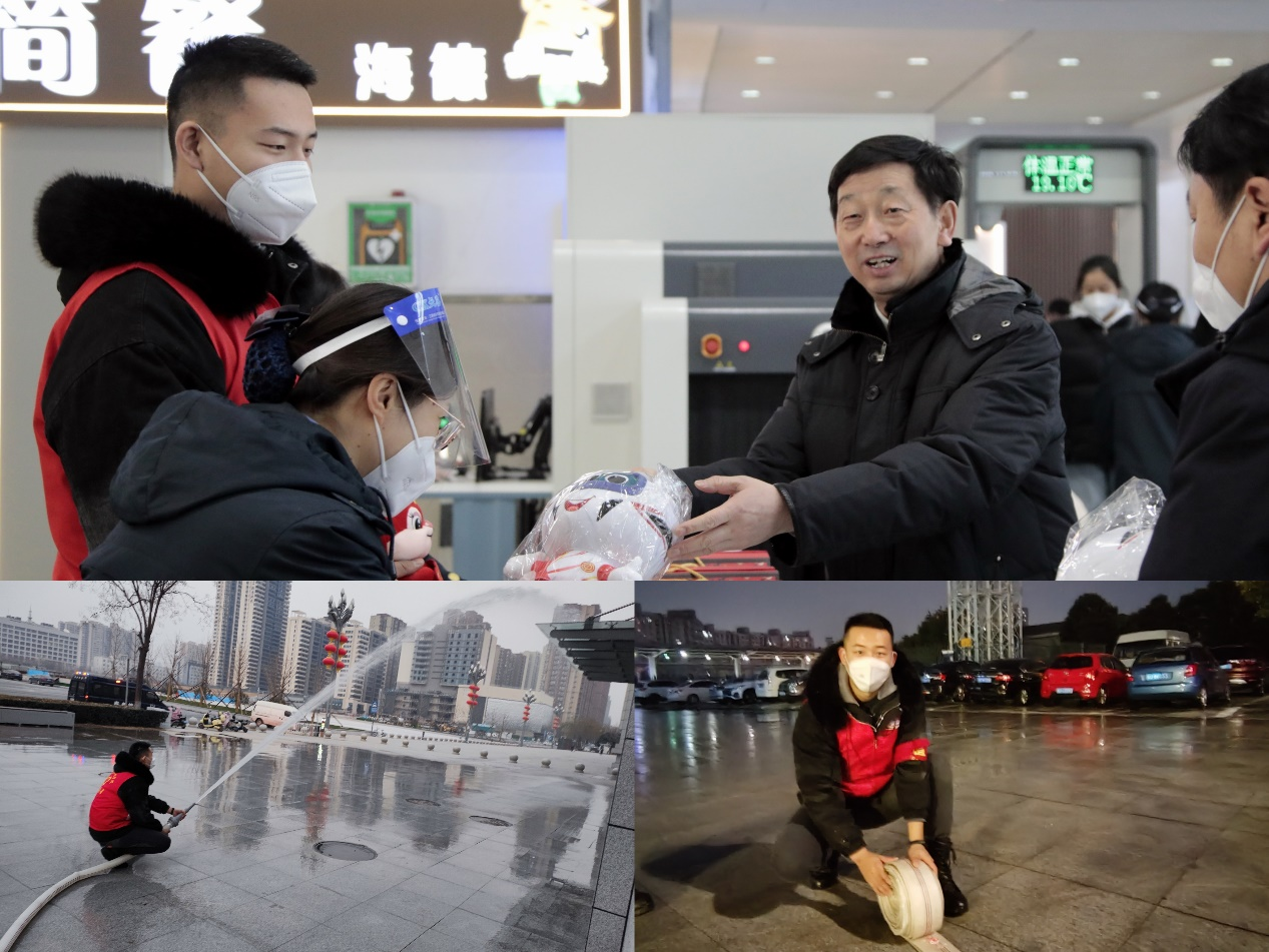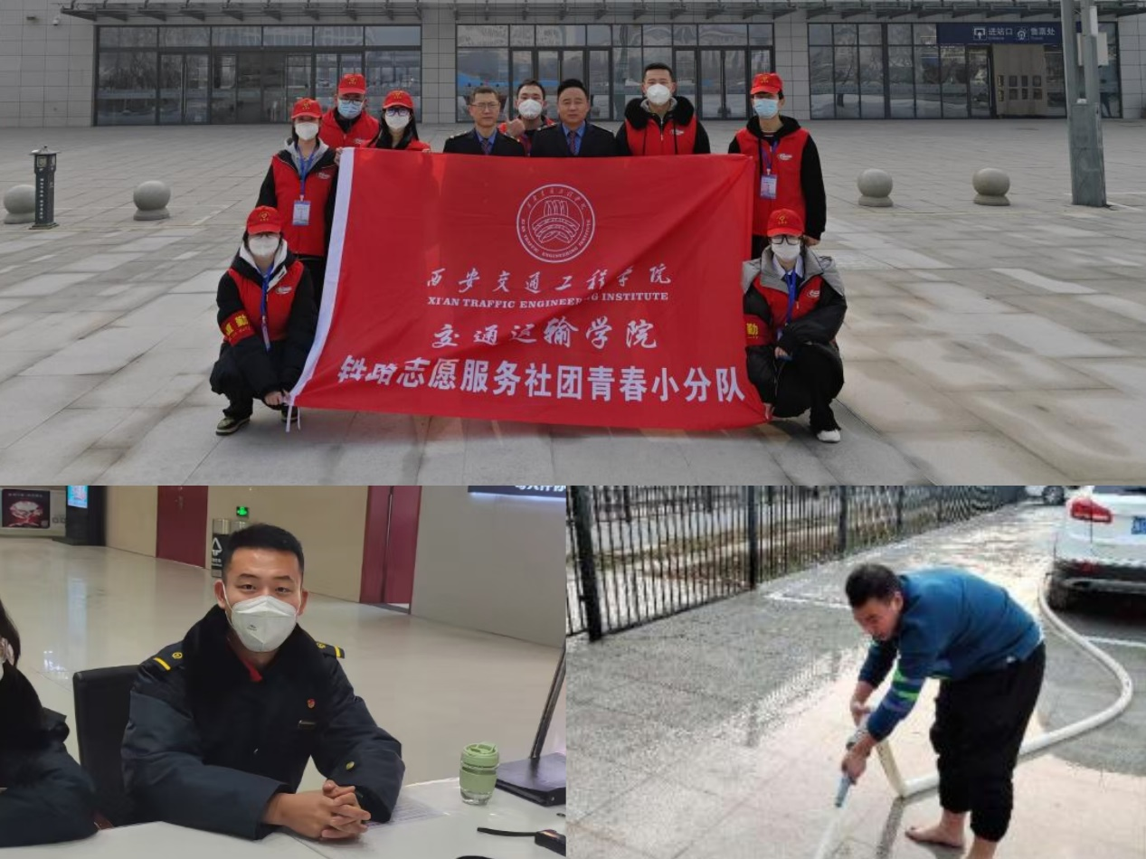 志愿服务期间,两位同学敢担当、勇作为,积极配合车站安排,有条不紊地完成了车站内的日常安全检查及秩序维护等工作。同时,他们还主动帮助旅客搬运行李、耐心解答旅客疑问、积极整理车站内的置物架。他们任劳任怨、乐于奉献,在寒风刺骨的傍晚,洗刷着上千平米的站前广场及停车场。张辽同学更是多次在积水的水井中开关阀门,井水浸透了全身的衣服,双手也起皱泛白,依然勇毅前行。侯安康和张辽同学在咸阳西站志愿服务期间的优秀表现,不仅得到了车站领导及员工的一致认可,也进一步发扬了不怕苦不怕累的志愿服务精神。