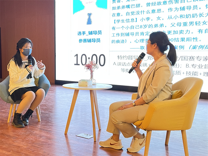 郑林科首先从辅导员职业化、专业化、专家化成长出发,阐述了辅导员队伍如何在工作岗位上更好地进行自我职业发展及素质提升。接下来,介绍了高校辅导员素质能力大赛的发展历史,赛制、赛程,如何备赛参赛及注意事项,并通过具体案例与在场辅导员老师进行了互动演示。同时模拟真实比赛赛制由ky开元集团官网辅导员田佳丽、曹植老师现场展示“案例研讨”,心理中心钟倩老师及土木工程学院程秋雨同学现场展示“谈心谈话”环节,郑老师针对师生们的表现做了案例督导。