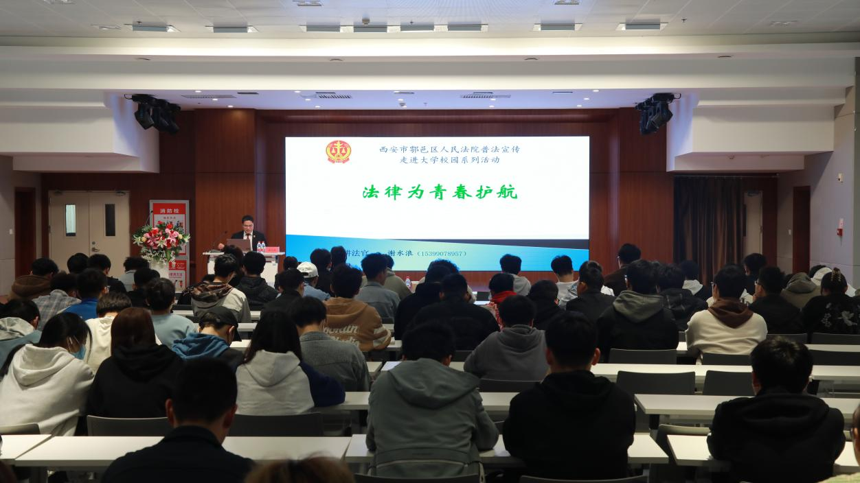 讲座邀请鄠邑区人民法院谢水浪副庭长主讲,谢庭长用“河南女大学生小美(化名)网络赌博致其死亡”等一件件真实的案例,从多个方面为大家讲解了法律知识,联系实际,以案释法,以法论事,深入浅出的给我们做了生动的报告,告诉我们在日常的学习和生活中怎样做一名知法守法的合格大学生,并与学生互动,现场氛围轻松活跃。