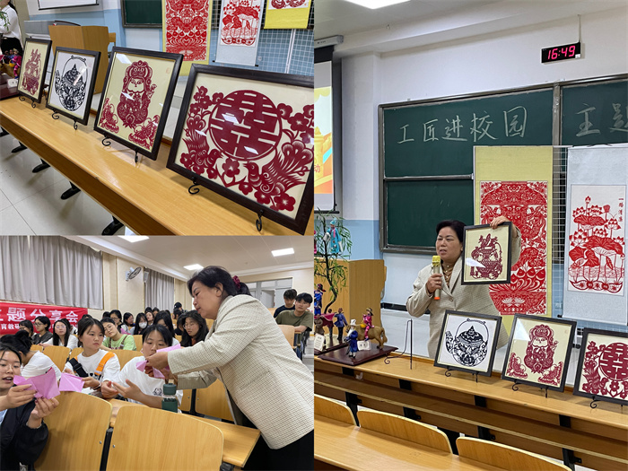 陕西省非遗保护项目——户县社火传承人宋志荣先生分享了从对社火文化的喜爱,到几十年如一日的深耕到社火文化的宣传与传承工作中,以及他创新思想通过制作微缩社火模型等方式多元宣传社火文化深受同学们喜爱,使学生们深刻感受到了能工巧匠的专注与中华传统文化的魅力。