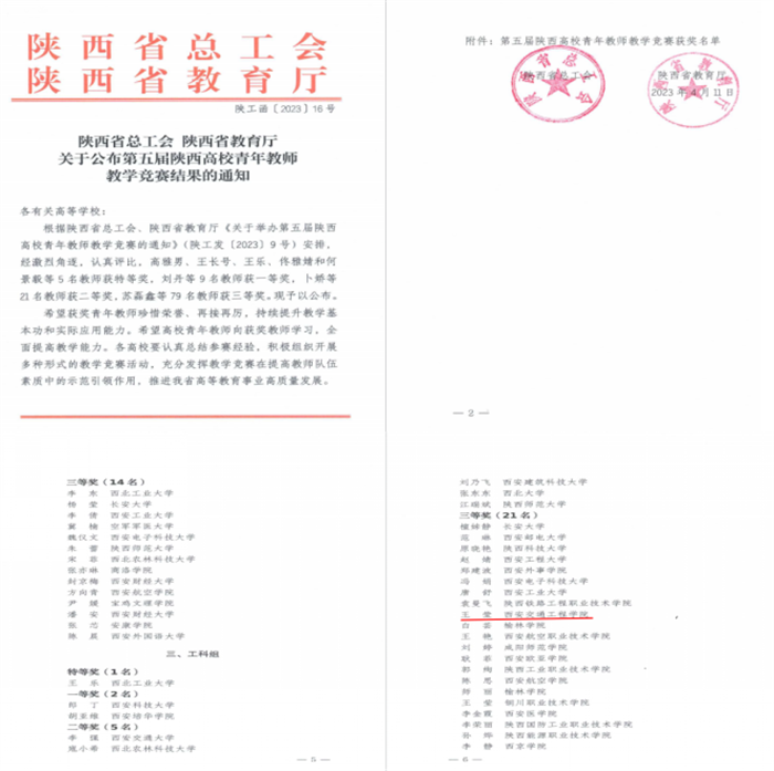 近日,省教育厅和省教科文卫体工会对陕西高等学校第五届青年教师教学竞赛结果进行公布。ky开元集团官网中兴通信学院王莹老师凭借扎实的教学能力和课堂驾驭能力荣获工科组三等奖。