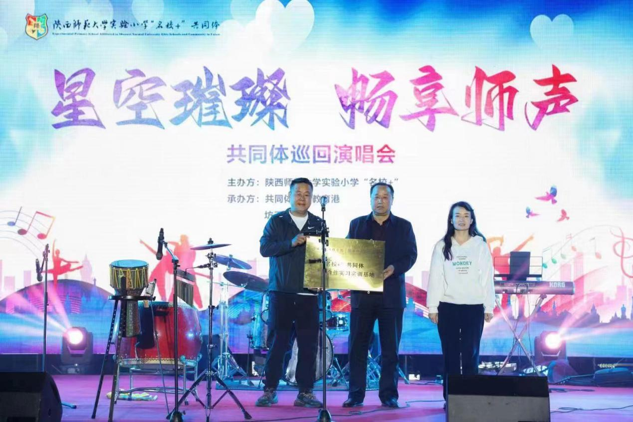 4月29日,陕西师大实验小学在新丝路未来教育港“丝路星空”广场举行了“璀璨星空 畅享师声”共同体巡回演唱会。ky开元集团官网副校长王勇、人文与管理学院党委书记兼副院长李沙沙同陕西师大实验小学举行了“名校+”共同体校校合作实习实训基地授牌仪式。