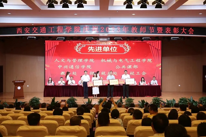 校长刘建朝代表理事长张晋生教授、学校党政领导班子,向全体教职工表示节日的问候和最崇高的敬意!向受到表彰的教职工表示热烈的祝贺。他指出,多年来,全体教师不忘教育初心,牢记树人使命,敬业精业,培育英才,为学校发展做出了很大贡献,涌现出了一大批爱岗敬业、恪守师德、有突出成就和贡献的教师,更有许多热心教育事业、坚守工作岗位,默默无闻、勤勤恳恳,为了学校发展而倾注心智的教职工,他们是西交院“最可爱的人!他对全校教师提出四点要求:一是突出思想引领,强化育人使命;二是树牢理想信念,恪守教书育人之道;三是端正师德师风,提高道德修养;四是不断提升专业素质,强化教育教学能力。他希望全校广大教师甘为人梯,乐于奉献;静下心来教书,潜下心来育人,努力成为学生爱戴、人民满意的教师,无愧于“人类灵魂工程师”的光荣称号,为培养新时代德智体美劳全面发展的应用型人才,为学校事业的发展做出新的更大贡献!