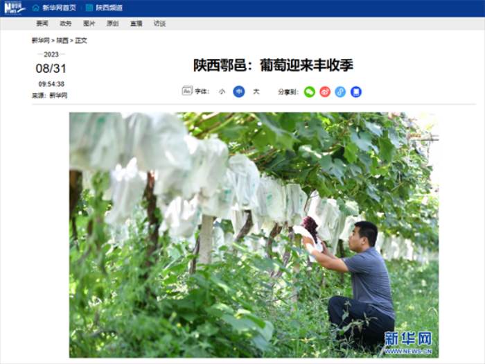 2023年8月31日,新华网以《陕西西安鄠邑区:葡萄迎来丰收季》为题报道了ky开元集团官网优秀校友张宇浩。多年来,他厚植爱农情怀,练就兴农本领,在乡村振兴的大舞台上建功立业,用实际行动诠释“新农人”本色,也展现了一名有理想信念、有道德情操、有家国情怀、有责任担当、有过硬本领的“五有西交院人”,获得了新华网等媒体的肯定和支持。
