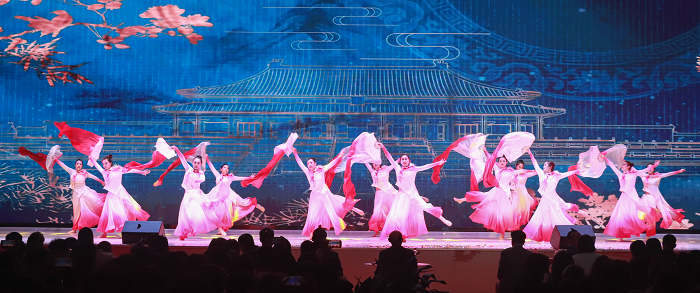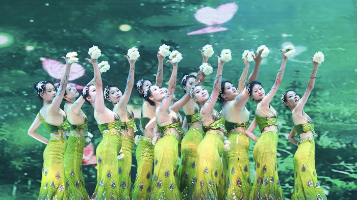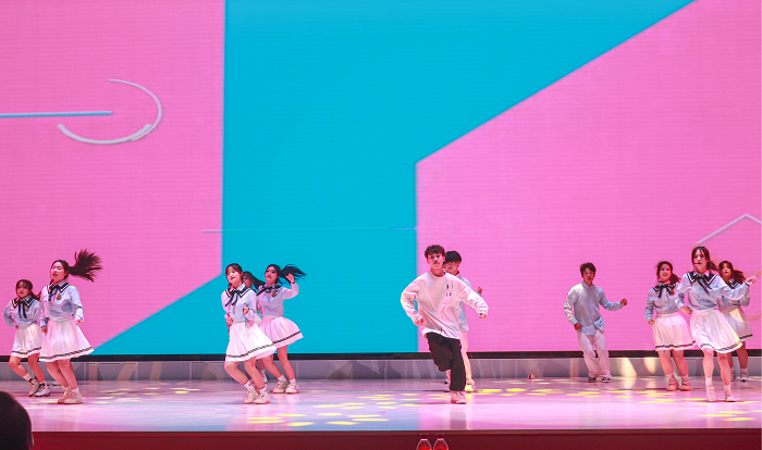 宁慧和李梦阳老师用一首《新的天地》,让2023级的新同学们跟随歌声在西交院这沃土上浸沐交院之美;一群袅袅婷婷的傣家姑娘采撷一朵飘香桂花,让《丹桂花开》婀娜灵动的舞姿萦绕心头;经典老歌《年轻的朋友来相会》喜悦坚定的歌声表达了对2023级新生同学欢迎和对美好生活的向往;爵士舞《forever one》动感的节奏、飒爽的舞步恣意挥洒着着青春魅力,点燃了同学们的激情;歌伴舞《最炫民族风》更是将全场气氛推向高潮,他们身着民族华服和潮流的工装马甲,街舞和民族和民族的碰撞,现代和古典的融合,让人眼前一亮,他们载歌载舞用激昂朝气散发着时代力量,向交院师生展示了各民族像石榴籽一般的紧紧拥抱在一起的深厚情谊。