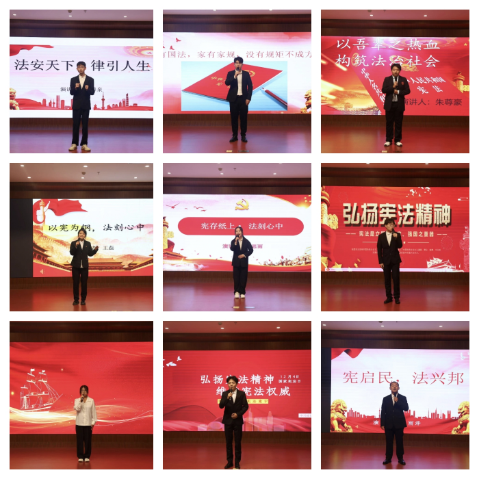本次比赛分为初赛和决赛两个阶段。初赛阶段,通过宣传和积极准备,同学们踊跃报名,经过初赛选拔,最终位10名选手进入决赛;在决赛中,参赛选手紧扣“宪法”主题,中心思想突出,选材角度新颖、得当,材料典型充分,内容结构完整,层次分明,能准确表达演讲的内容;参赛选手们精神饱满,精彩有力,势态语言自然到位,具有强大的激励性、说服力和感召力,表达自然流畅,正确把握演讲节奏,情感张弛有度;选手们从宪法的地位、宪法的作用、宪法在生活中的体现等多个方面展开具体演讲,整个过程紧张有序、精彩纷呈。