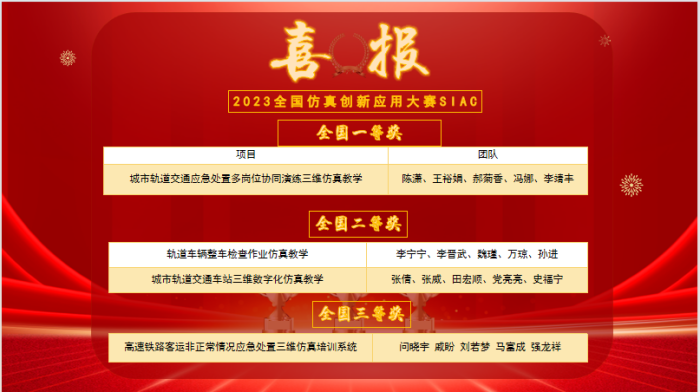 自大赛启动以来,学校各级高度重视,由教务处组织,交通运输学院、机械与电气工程学院、土木工程学院、现代技术学院等单位师生积极参与,7组师生参赛队伍分别荣获陕西省省赛一等奖1项、二等奖2项、三等奖3项。半年来,现代技术学院院长都娟丽副教授牵头,精心筹划组织参赛团队开展赛前培训,解读全国仿真创新应用大赛规则、学习高校工科组赛道标准、撰写参赛申报书、观摩往届获奖作品。针对轨道交通类专业教学项目特色,多角度、多维度、多层次剖析“仿真资源-学生能力提升-课程教学需求”之间的关系。各参赛团队从实际出发,挖掘项目仿真资源建设教学优势与特色,设计并完善仿真教学融入课堂。
