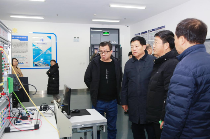 刘建朝一行参观山东交通职业学院汽车综合实训基地(左二)