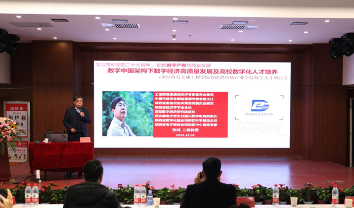 陕西省经济学学会会长、西安邮电大学乡村振兴数字电商学院院长张鸿教授作题为《数字中国框架下数字经济高质量发展及高校数字化人才培养》的报告