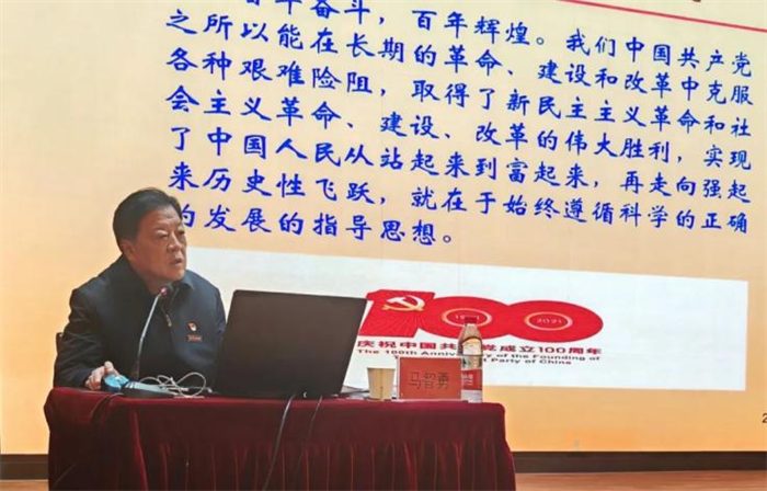 马智勇为积极分子培训班做第一次党课培训。他以“中国共产党的指导思想”为题,从党的指导思想是什么、党的指导思想的形成与发展、党的指导思想的理论体系三个方面展开讲述,培训内容丰富、全面系统、深入浅出,为入党积极分子正确理解党的指导思想提供了帮助。