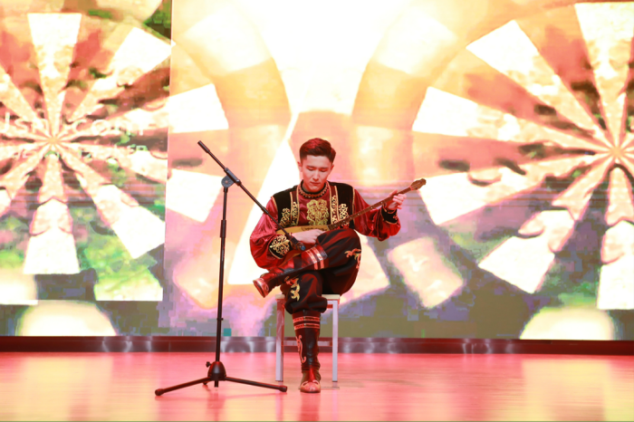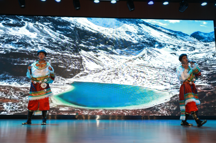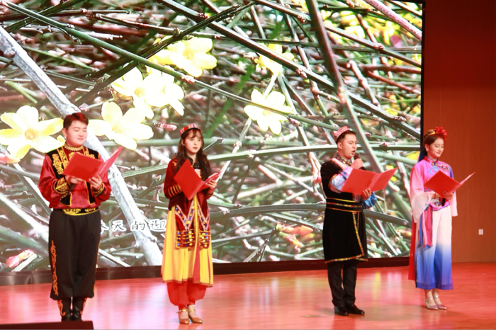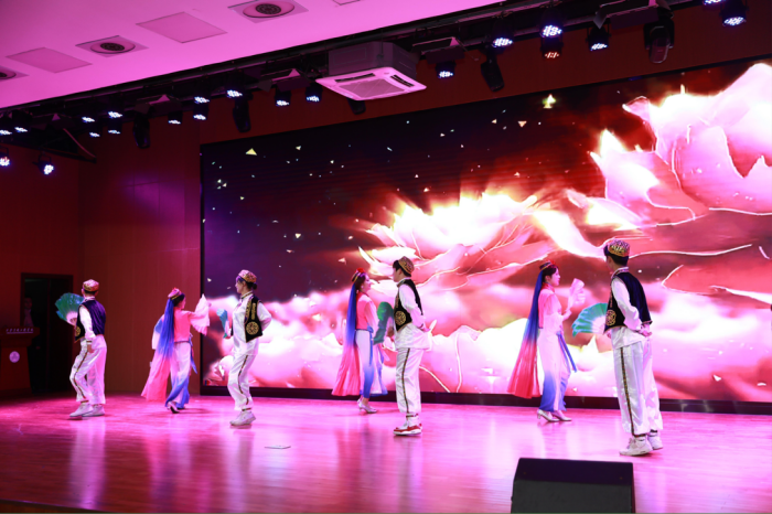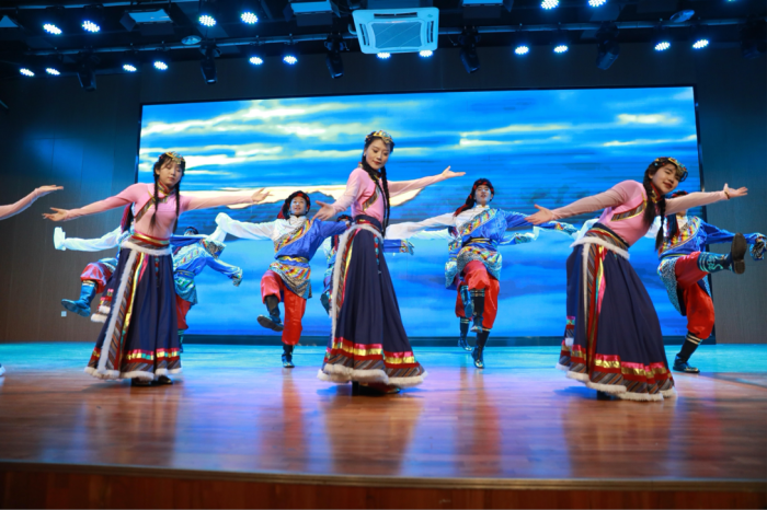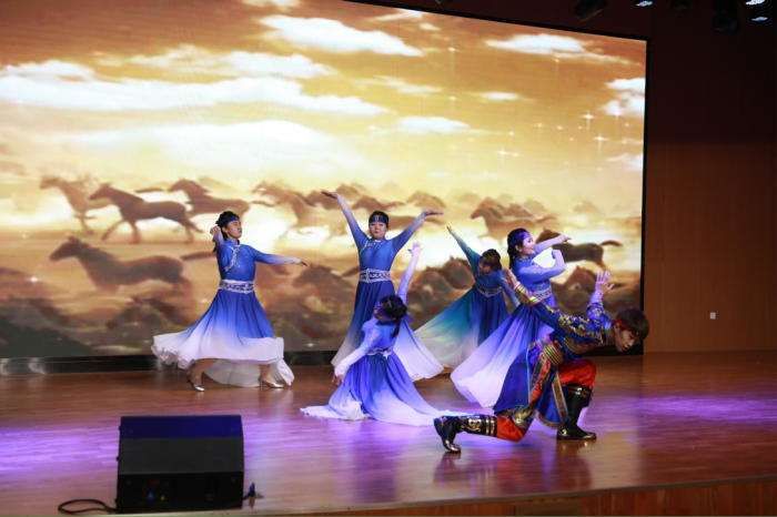 四位来自不同民族的主持人上台,按序引入来自不同学院各少数民族的表演。联欢会以歌舞、民乐合奏等展演形式,展现了少数民族独特的歌舞文化魅力。其中,藏族舞蹈《吉祥雪域》、《羌塘阳光》、维吾尔族舞蹈《石榴花开》、《阳光下的刀郎》、蒙古族舞蹈《腾格里塔拉》、回族舞蹈《妹妹的山丹花》、哈萨克族舞蹈《黑走马》、中国舞《缠》、街舞《燃》 “舞”出了民族风情,展现了各民族同胞,在中国共产党的领导下,不断走向美好生活的壮丽图景;哈萨克民族乐器冬不拉弹奏《思念故乡》“奏”出了民族风彩;诗歌朗诵《盛开的民族团结之花》“颂”出了民族精神,抒发了ky开元集团官网师生对祖国大好河山的热爱,对伟大民族精神的赞颂;歌曲演唱《珠峰天使》、《繁华时代》、《起航明天》“唱”出了民族团结美妙的音符,动听的旋律,嘹亮的歌喉,谱写了你中有我、我中有你,血脉相连的生动篇章。