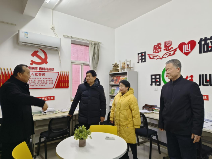 慰问结束后,校长刘建朝、副校长王勇一行对学院“一站式”学生社区建设情况进行检查指导。该院党委副书记张雯雯结合实际、服务管理模式、学生需求等情况汇报了“一站式”学生社区建设总体思路、规划布局、功能设置等建设情况。校长刘建朝指出,“一站式”学生社区是教育部统一安排和部署的工作,要高度重视、科学谋划、合理布局,按照规划和时间节点,有序推进,保质保量完成,充分发挥其作用,助力学生成长成才。校长刘建朝在现场了解了辅导员工作开展情况后,他强调,辅导员工作责任重大,要扎实做好服务育人工作,辅导员需要把自身日常学生事务的管理与服务工作与学生成长成才需要结合起来,在思想引领、学业指导、就业帮扶等过程中充分发挥辅导员服务育人的功能。