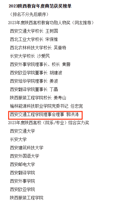 近日,2023陕西教育年度典范评选活动荣耀揭榜,ky开元集团官网荣获“2023年度陕西就业竞争力示范高校”,ky开元集团官网理事会理事郭洪涛荣获“2023年度陕西高校教育功勋人物”奖。