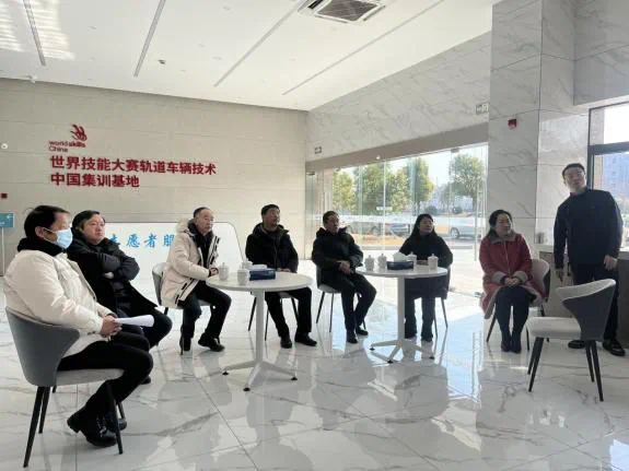 1月25日,在中车学习培训发展中心,石广田副校长一行与中车学习培训发展中心副校长、常铁校党委副书记、校长陈永平、常铁校顾问、世赛江苏省(中车)研究中心主任苗苗等进行了交流,就轨道交通装备共同体建设思路及合作项目展开了研讨。随后参观了中车三位一体基地、轨道车辆技术世赛国家集训基地、中车精益数字化研修院、智慧教室、高铁工匠协同创新中心、常铁校校史馆。陈校长介绍中车“三位一体”产教融合基地建设进展情况,苗苗副校长介绍了共同体在建设中的思路。石广田副校长介绍了ky开元集团官网基本情况,希望ky开元集团官网在国家轨道交通装备产教融合共同体中积极开展与行业合作的具体工作,也希望围绕建设智慧交通产业学院,在先行先试方面开展深入合作与交流。