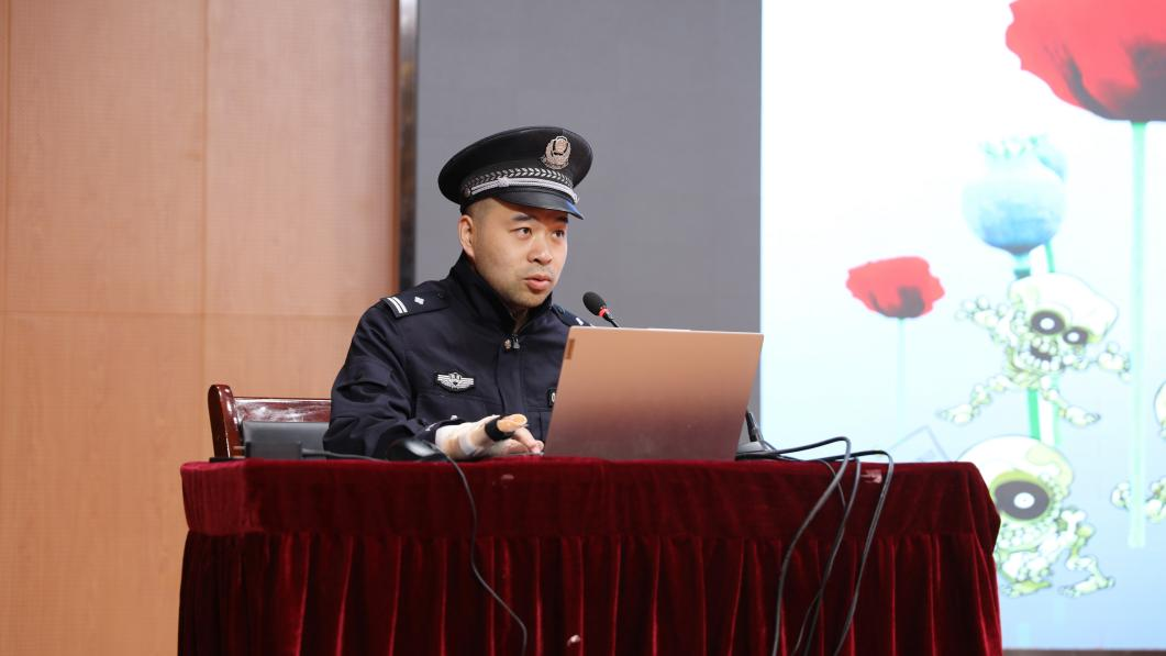 邢警官以我国目前禁毒总体形势为切入点,通过丰富的毒品案例生动形象地为全体师生讲解了什么是毒品、概括了毒品依赖性、非法性、危害性三个特点。随后,邢警官向同学们详细介绍了鸦片、吗啡、海洛因、病毒等常见的几种毒品类型,针对大学生好奇心强、辨别能力较弱等特点,深入浅出地向学生们科普了毒品的巨大危害,最并提醒学生不要因为好奇或无知,误入歧途。最后,民警就如何预防毒品犯罪行为向各位同学提出建议,呼吁同学们广泛了解宣传禁毒知识,将这份责延伸到社会中去,为维护社会安全稳定做出贡献。
