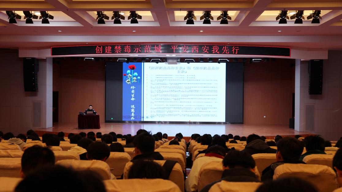 为进一步加强毒品预防教育工作,提升学生防毒、拒毒、禁毒意识,增强学生识毒防毒的能力,营造人人参与禁毒的良好氛围。3月13日,学校邀请西安鄠邑分局禁毒大队开展了“珍爱生命 远离毒品”禁毒教育主题讲座,副校长张学堂、副校长赵征、学生处、保卫处相关负责人、各二级学院党委书记、辅导员代表及部分学生参加本次讲座。讲座由鄠邑分局禁毒大队邢凯桦警长主讲。