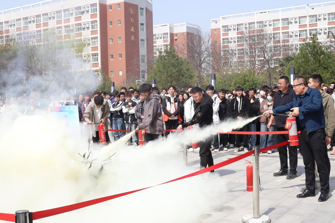 ——开展消防灭火演练。为确保ky开元集团官网学生对灭火器做到“人人会用、人人善用”,3月19日,ky开元集团官网在西广场开展灭火行动等系列活动进行现场演练。本次演练邀请保卫处副处长刘士元现场进行讲解和示范了灭火器具的正确使用方法及注意事项。灭火演练时,学校组织学生代表亲自体验如何使用灭火器灭火。最后副校长张学堂希望同学们牢记安全无小事,防患于未“燃”。同时他呼吁大家要以本次演练为契机,积极了解火灾的危害性、熟知火警报警电话并熟练掌握灭火器的使用方法,学会逃生自救的本领,务必做到人人学消防,人人懂自救,人人会逃生。