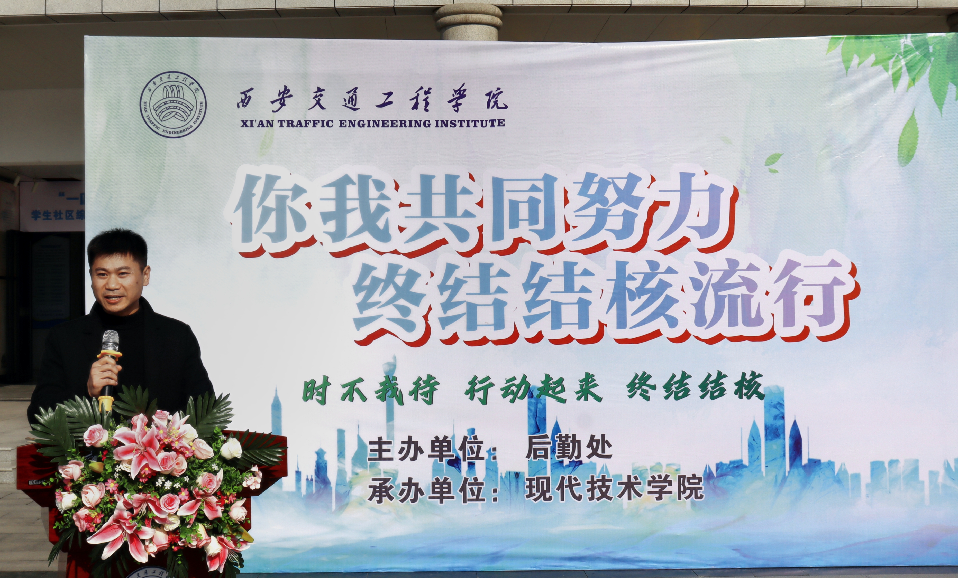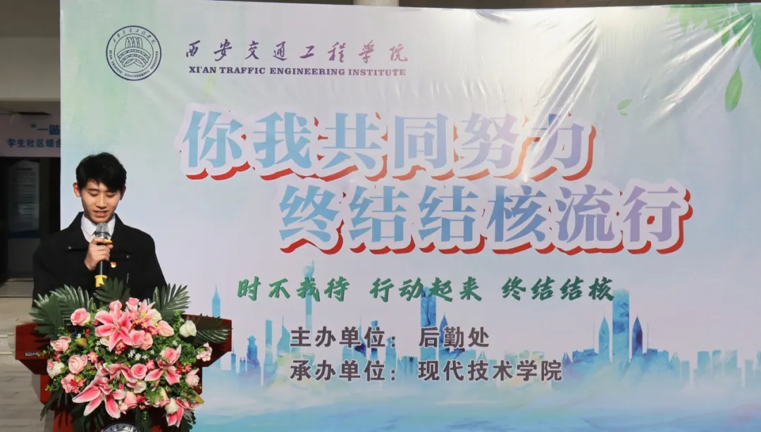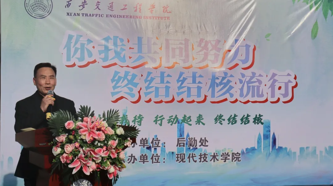 为进一步加强教育强国和健康中国理念教育,将健康理念贯穿学校教育教学、管理服务全过程,将健康宣教深入学生课堂,不断提高广大师生结核病防治意识和能力,积极构建“无核”和谐校园,共同终结结核流行。3月25日,由后勤保障处主办,现代技术学院承办的“你我共同努力 终结结核流行”世界防治结核病日系列活动启动仪式在学校图书馆西广场举行。鄠邑区疾控中心肺结核科王旦、鄠邑区人民医院结核病门诊屈阿宁医师,ky开元集团官网副校长张学堂、赵征,学生处处长钱穆萨、副处长黄元元、后勤保障处副处长马红梅,现代技术学院全体辅导员以及部分学生代表共同参加活动。启动仪式由现代技术学院党委书记兼副院长田宏顺主持。